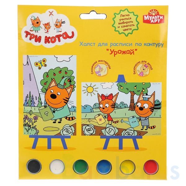 Развивающий творческий набор для росписи по контурному рисунку с номерами «Три кота. Урожай» ТМ «MultiArt» - сразу 3 в 1: