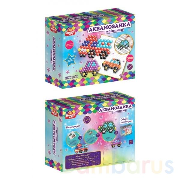 Набор для детского творчества «Аквамозаика. Машинки» ТМ «Мульти Арт» - отличный подарок для развития творческих способностей вашего ребёнка:- 300 бусин- бусины скрепляются водой (без клея и утюга)- в комплекте всё необходимое: пластиковая основа, цветные бусины, карточки-шаблоны, распылитель для во…