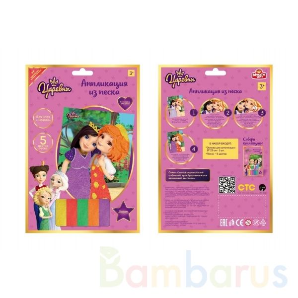 Набор для творчества - аппликация из песка «Царевны» из серии «Сказочная мастерская» ТМ «Мульти Арт» - отличный подарок для ребёнка, который будет способствовать развитию его творческих способностей.