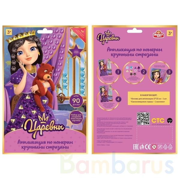С помощью красочной основы и сверкающих страз ваша принцесса сможет самостоятельно создать сияющую поделку-аппликацию с изображением любимой героини, которую можно подарить родным, друзьям или использовать для украшения детской комнаты.
