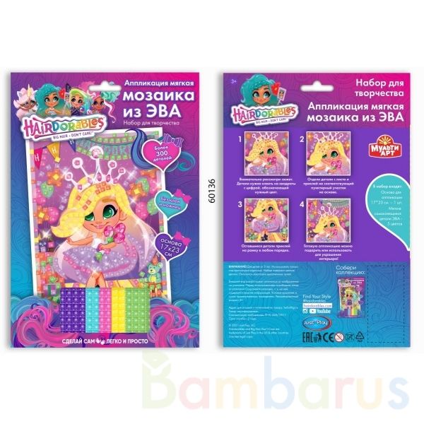 Набор для творчества - аппликация - мягкая мозаика из материала ЭВА «Hairdorables» ТМ «Мульти Арт» - отличный подарок для ребёнка, который будет способствовать развитию его творческих способностей.