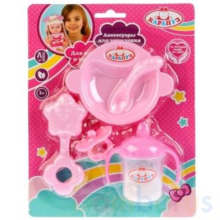 Набор аксессуаров для пупса ТМ «Карапуз» обязательно понравится маленькой принцессе:- бутылочка- поильник с ручками с «молоком»- пустышка- ложка- тарелка- погремушкаЭтот игровой набор осчастливит любую малышку, ведь в нём есть все необходимое для ухода за любимой куклой. С ним игры станут еще интер…