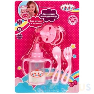 Набор аксессуаров для пупса ТМ «Карапуз» обязательно понравится маленькой принцессе:- бутылочка- поильник с ручками с «молоком»- пустышка- вилка- ложкаЭтот игровой набор осчастливит любую малышку, ведь в нём есть все необходимое для того, чтобы накормить любимую куклу. С ним игры станут еще интерес…