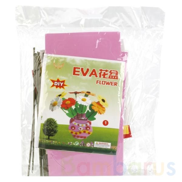 С набором для рукоделия ребёнок сможет сделать свою собственную вазу с цветами. В него входят: цветные листы с вырезками разных форм и размеров, палочки-стебельки, синтепон и дополнительные детали. Приклевая все эти элементы к листу, ребёнок сможет создать свою картину. Развивает мелкую моторику, творческие навыки, внимание.