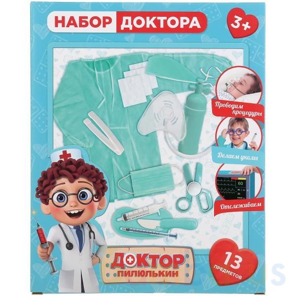 Набор доктора «Доктор Пилюлькин» ТМ «Играем вместе» станет отличным подарком для ребёнка.В комплекте 13 предметов:- хирургический костюм- медицинская шапочка- маска- дыхательный аппарат- лоток для инструментов- 2 шприца- скальпель- ножницы- пинцет- медицинский монитор и другие аксессуарыВ этом набо…