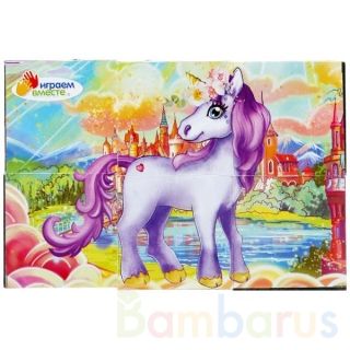 Кубики – одна из первых игрушек малыша, занимающая важное место в его развитии. Из входящих в данный набор кубиков ребёнок с удовольствием будет собирать разные варианты красочных картинок с изображением милых сказочных существ - единорогов.