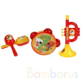 На инструментах нарисованы герои популярного мульсериала «Ми-ми-мишки», что обязательно понравится малышам. Изготовлены игрушки из экологически чистого материала и безопасны для детей. С таким замечательным набором ваш ребёнок и его друзья смогут устроить дома настоящий концерт.