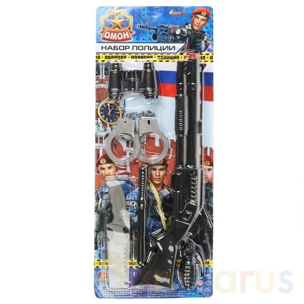 Игровой набор «Полиция» обязательно понравится юному герою.Комплектация:- автомат- наручники- бинокль- граната- дубинка- ножС игровым набором маленький герой будет придумывать увлекательные спецзадания, защищать мир и стоять на страже порядка. Подойдёт для активных игр на воздухе и в помещении.Игро…