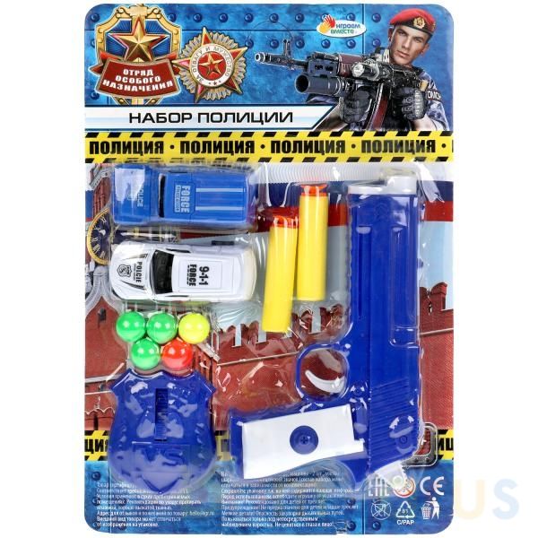 Игровой набор «Полиция» ТМ «Играем вместе» обязательно понравится юному правозащитнику.Комплектация:- пистолет (револьвер)- 2 мягкие пули- 5 разноцветных пуль-шариков- полицейский значок- 2 машинкиС этим игровым набором маленький герой будет придумывать увлекательные спецзадания, защищать мир и сто…