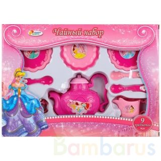 Набор посуды ТМ «Играем вместе» выполнен в стиле популярных принцесс:- чайник- 3 блюдца- 2 молочника- 3 ложкиНабор представлен в ярко-розовом цвете и украшен изображением персонажей мультфильмов о принцессах.Игра с набором ТМ «Играем вместе» будет развивать:- фантазию- мышление- мелкую моторикуРазм…