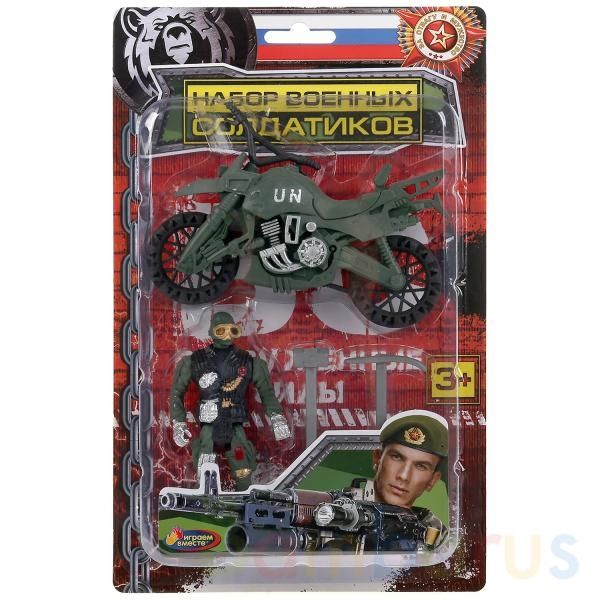 Набор, состоящий из солдатика, военного мотоцикла и прочих аксессуаров, позволит создать настоящие сцены спецопераций. Благодаря компактным размерам набор можно брать с собой на прогулку или в поездки.