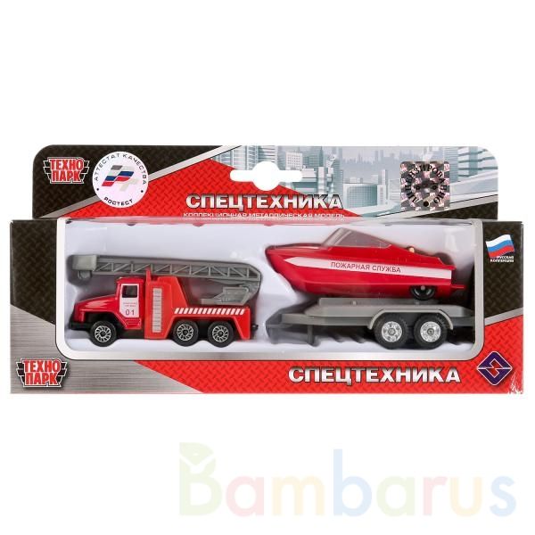 Набор металлических моделей «Пожарная машина с прицепом» ТМ «Технопарк» - прекрасный подарок для ребёнка.