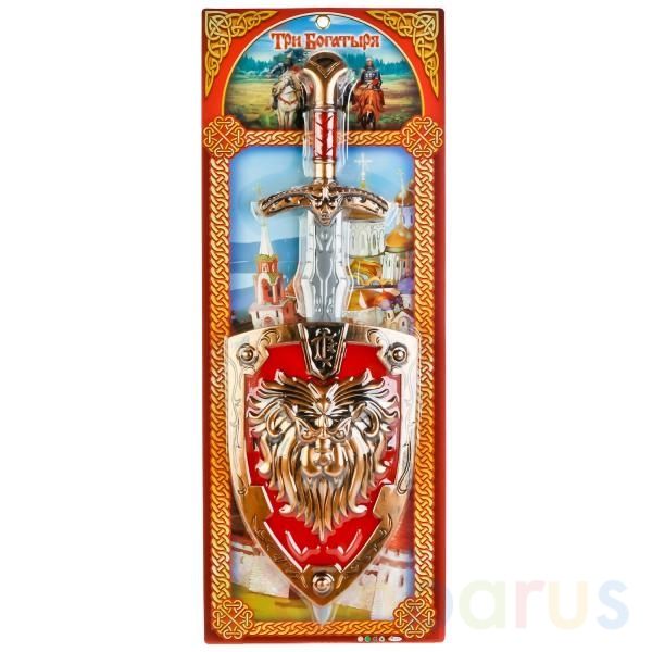 Набор оружия для защиты сделан по мотивам русской народной сказки и понравится каждому мальчику. В него входят меч и щит, с помощью которых можно нападать и защищаться. Элементы выполнены из прочного пластика, украшены декоративными элементами и позволят растянуть игру на целый день. Меч не заточен, поэтому полностью безопасен для ребёнка и не причинит вреда. Рекомендуется детям старше 3-х лет.