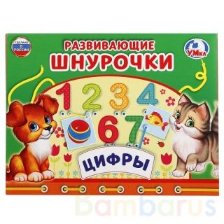Настольная игра-шнуровка «Азбука М. А. Жукова» - специальное предложение ТМ «УМка» для развития и обучения детей младшего возраста. Она состоит из картонного основания с иллюстрациями цифр, предметов в количестве от 1 до 10 и комплекта шнурков. Надо изображённое число с цифрой, его обозначающей п…