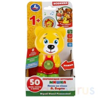 Музыкальная игрушка «Обучающий мишка» ТМ «УМка» станет прекрасным подарком для ребёнка:- 8 песен на стихи Агнии Барто: «Самолёт», «Котёнок», «Мишка», «Фонарик», «Грузовик», «Ути-ути» и др.- музыкальная сказка «Репка» - звуки и фразы мишки- световые эффекты- голова-трещотка- переключатель Вкл./Выкл…