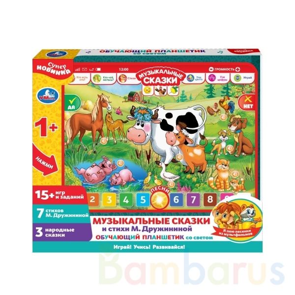 Обучающий планшет со светом «Музыкальные сказки и стихи М. Дружининой» ТМ «УМка» станет прекрасным подарком для маленьких любознаек: