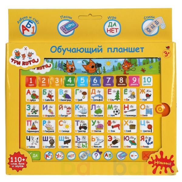 Обучающий планшет «Три кота» ТМ «УМка» станет прекрасным подарком для маленьких поклонников мультсериала про любознательных котят и их друзей:- 110+ слов, букв, звуков- 3 песни из м/ф (фрагменты): «Познакомьтесь - Три кота», «Сладости», «Три кота, три хвоста»- учим цвета и числа от 1 до 10- учим бу…