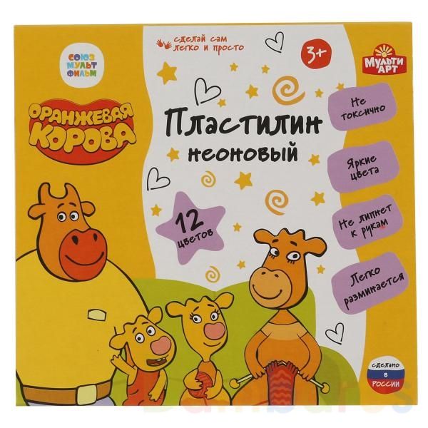 Неоновый пластилин «Оранжевая корова» ТМ «МультиАрт» – отличный подарок для развития творческих способностей ребёнка: