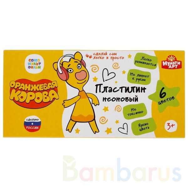 Пластилин неоновый «Оранжевая корова» ТМ «МультиАрт» – отличный подарок для развития творческих способностей ребёнка:- 6 цветов- не токсично- более яркие и насыщенные цвета- не липнет к рукам- легко разминается- стек для оформления поделок в комплекте- упаковка с изображением любимых героевИспользу…