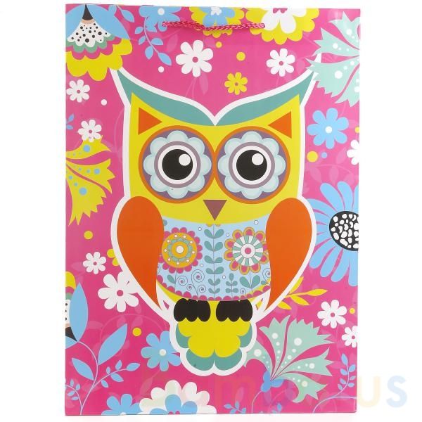 Красочный пакет, с изображением стильной и яркой совушки, принесёт ребенку радость предвкушения. Ему будет интересно заглянуть в него, чтобы узнать, что же приготовили родные или друзья на день рождения или на любой другой праздник.