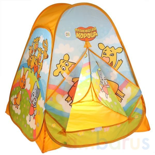 Детская игровая палатка «Оранжевая корова» ТМ «Играем вместе» непременно понравится маленьким поклонникам мультсериала про весёлое семейство коров и их друзей: