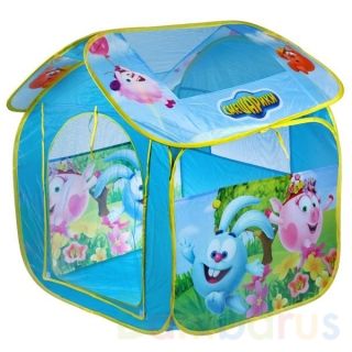 Игры с детской игровой палаткой «Смешарики» - любимое развлечение каждого малыша! Вместе с любимыми персонажами в ней можно устроить свой уютный домик, передвигать его удобно за ручки, а дверь и окно легко закрыть от нежданных гостей. Для компактной лёгкой палатки найдётся место в любой комнате! Игрушка сертифицирована и лицензирована. Размер палатки: 83*80*105 см.