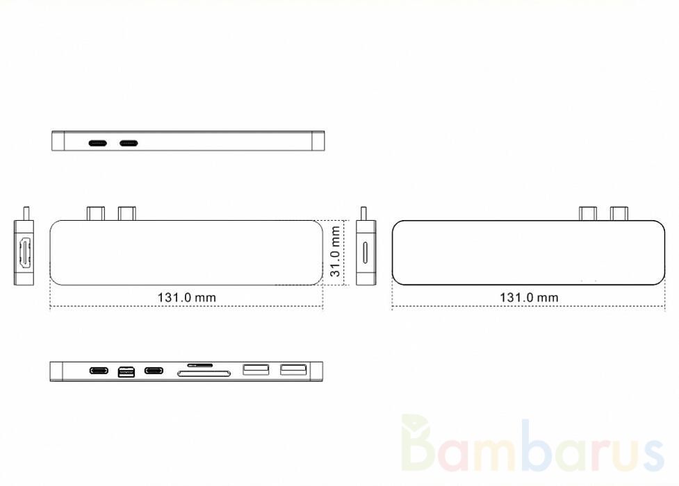 Хаб HyperDrive PRO 8-in-2 имеет компактные размеры и выполнен из цельного листа алюминия, чем обеспечена высокая прочность и долговечность устройства. Порты расположены таким образом, чтобы одновременно были задействованы все интерфейсы без каких-либо трудностей. Подключается концентратор при помощи двух разъемов USB-C и не имеет кабеля, что придает дополнительную надежность.