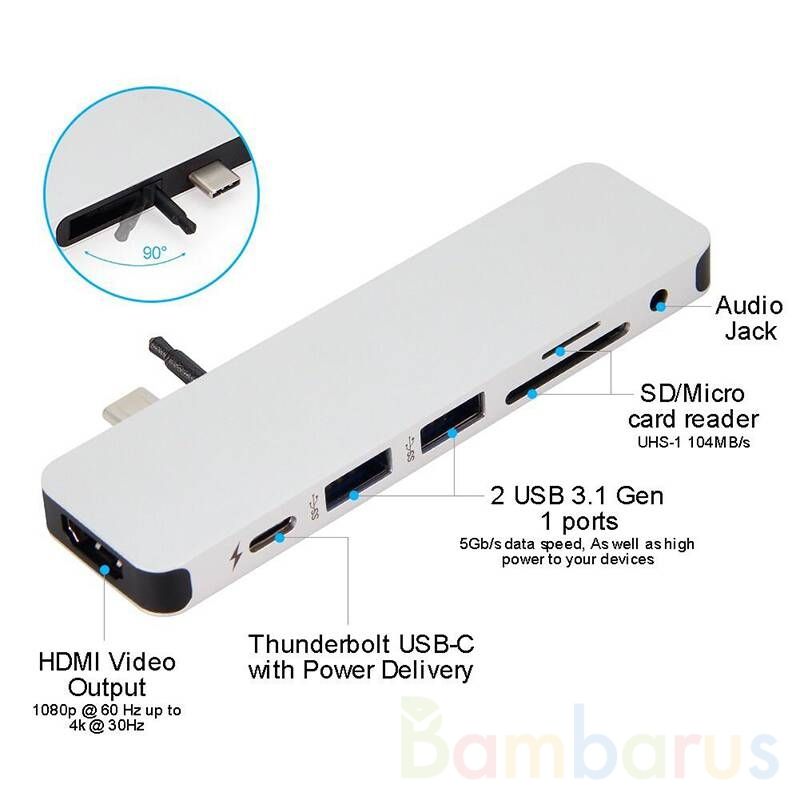 Hyper HyperDrive Hub 7 в 1 представляет собой хаб, который увеличивает количество дополнительных выходов специально для MacBook Pro 2016/2017/2018. Хаб подключается с помощью двух USB-C портов и на выходе вы имеете: HDMI, 2 порта USB-C, вместо использованных для подключения хаба, 2 порта USB 3.1, картридеры для MicroCD и CD. С их помощью вы можете подключать к ноутбуку различную периферию, носители информации, дисплеи и LED-панели, осуществлять зарядку и синхронизацию мобильных устройств. Особенности: Сделан из алюминия; Стиль и дизайн компании Apple; Подсоединение компьютеру 2 USB-C. Выходы: 4K HDMI Video Output; USB-C 40Gb/s, 100W Power Delivery, видео 5K; USB-C 5Gb/s, 60W Power Delivery; 2 USB 3.1 до 5Gb/s; Картридер для MicroCD до 104 Mb/s; Картридер для CD до 104 Mb/s; LED индикатор.