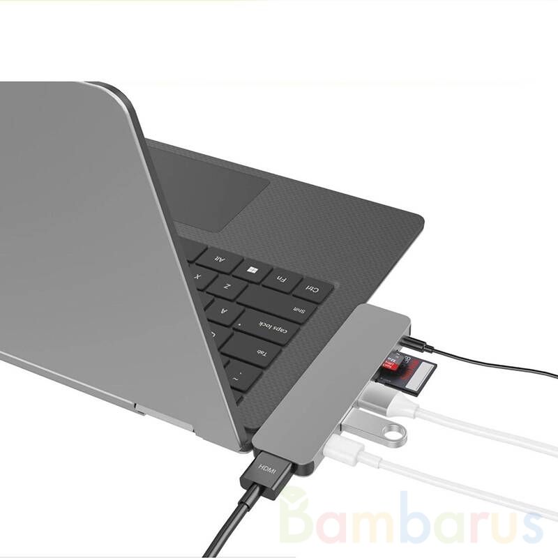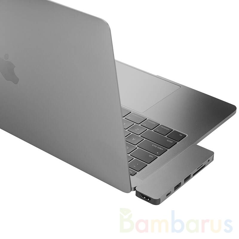 Hyper HyperDrive Hub 7 в 1 представляет собой хаб, который увеличивает количество дополнительных выходов специально для MacBook Pro 2016/2017/2018. Хаб подключается с помощью двух USB-C портов и на выходе вы имеете: HDMI, 2 порта USB-C, вместо использованных для подключения хаба, 2 порта USB 3.1, картридеры для MicroCD и CD. С их помощью вы можете подключать к ноутбуку различную периферию, носители информации, дисплеи и LED-панели, осуществлять зарядку и синхронизацию мобильных устройств.