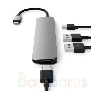 Переходник Satechi Slim Aluminum Type-C Multi-Port Adapter позволяет подключать к MacBook c портом USB-C одновременно до двух устройств со стандартным USB-разъемом. С данным переходником пользователи MacBook могут вздохнуть с облегчением. Теперь в вашем распоряжении будет два порта USB 3.0, порт 4K HDMI и разъём USB Type-C для подключения кабеля питания. Оба порта USB могут служить для подключения других устройств, таких как камера, плеер, флеш-накопитель и многое другое.