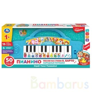 Музыкальное электропианино с народными потешками и песнями на стихи А. Барто ТМ «УМка» непременно понравится малышу и будет способствовать развитию его творческих способностей:- 15 песен на стихи Агнии Барто: «Помощница», «Я знаю, что надо придумать», «Нарисуем огород», «Сторож», «Чудеса», «Мишка»,…