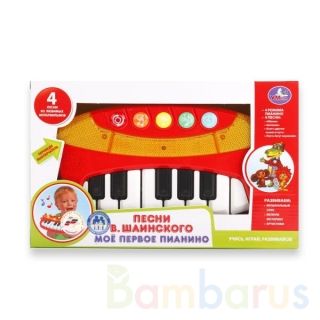 Мини-пианино с песнями В. Шаинского от компании Умка представляет собой компактный детский обучающий синтезатор. Игрушка выполнена из металла и пластика, имеет тринадцать клавиш, может проиграть четыре песни композитора В. Шаинского. Этот синтезатор для детей от трех лет имеет два режима работы. В одном ребенок сможет прослушать заложенные в маленьком пианино песни, а во втором режиме - попробовать себя в творчестве, сочинить собственную мелодию. Рекомендовано детям старше 3-х лет.