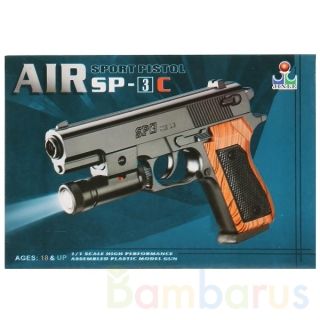 Пистолет выполненный в виде современного оружия с удобным прикладом и пульками в комплекте - приведёт юного стрелка в восторг! Оружие оснащено фонариком, который пригодится для ночных операций. Фонарь включается с помощью красного рычажка, расположенного на нём сбоку. Игрушка подойдёт для активных …