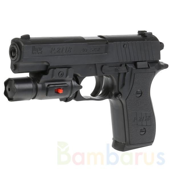Пистолет с лазерным прицелом, выполненный в виде современного оружия, приведёт юного стрелка в восторг! Игрушечное оружие развивает много полезных качеств у ребёнка, при этом не вредит окружающим и учит во время игры защищать себя и своих близких. С ним маленький герой будет придумывать увлекательн…