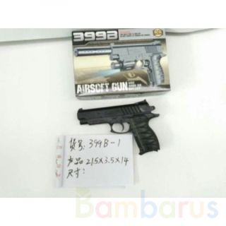 Игровой пистолет, выполненный в виде современного оружия с удобной рукояткой, приведёт юного стрелка в восторг.