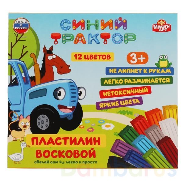 Восковой пластилин «Синий трактор» ТМ «МультиАрт» – отличный подарок для развития творческих способностей ребёнка:- 12 цветов: «чёрный», «фиолетовый», «голубой», «синий», «зелёный», «тёмно-зелёный», «серый», «коричневый», «красный», «оранжевый», «жёлтый», «белый»- не токсично- яркие цвета- не липне…