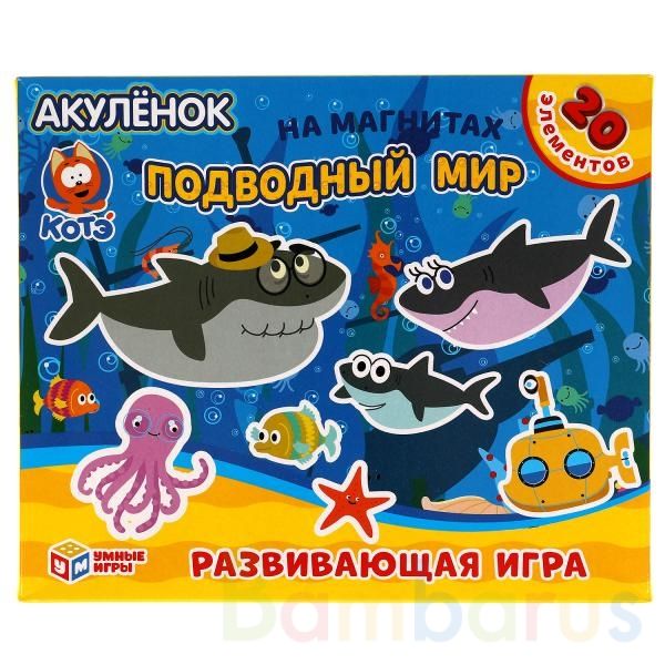 Развивающая игра на магнитах «Котэ ТВ. Акулёнок. Подводный мир» ТМ «Умные игры» непременно понравится маленьким поклонникам популярного мультфильма о малыше Акулёнке и его семье: