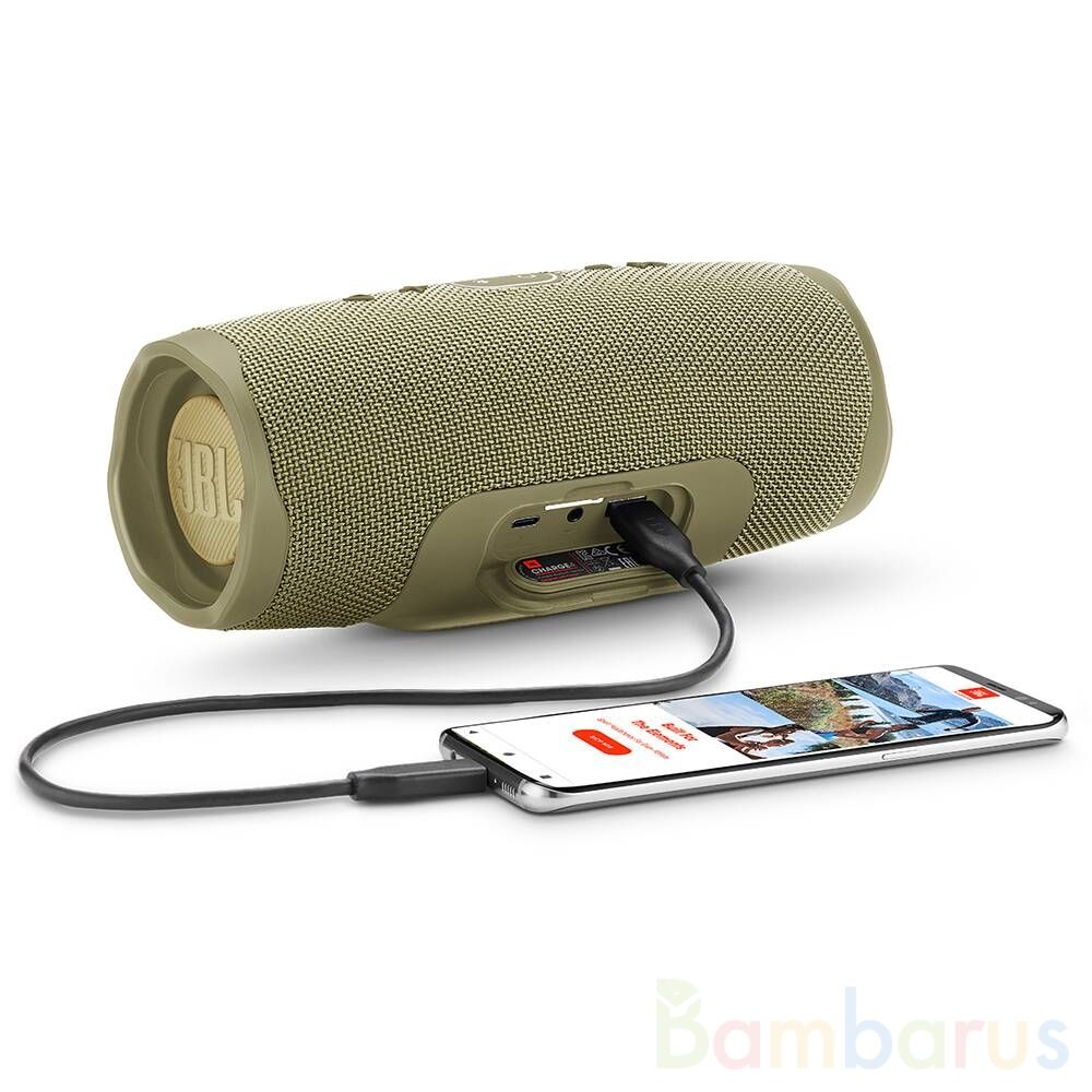 Портативная колонка JBL Charge 4 с функцией Bluetooth, мощным звуком и встроенным аккумулятором для зарядки устройств. Запатентованные JBL динамики и два излучателя низких частот наполняют звук чистыми басами. Мощный литий-ионный аккумулятор емкостью 7500 мАч обеспечивает возможность непрерывного воспроизведения музыки до 20 часов. Колонка имеет удобный встроенный USB-разъем для зарядки других устройств, например смартфона. Колонка Charge 4 имеет прочный корпус со степенью защиты от воды IPX7 и представлена в нескольких расцветках. С помощью технологии JBL Connect+ можно объединить более 100 акустических систем с поддержкой JBL Connect+ по беспроводной сети для увеличения мощности звука.