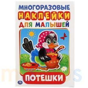 Малыш весело и с пользой проведёт время, слушая или читая весёлые потешки и дополняя красивые картинки многоразовыми наклейками. Благодаря удобному формату книжку можно взять с собой.