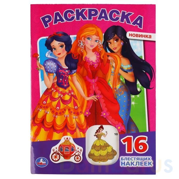 Малышка будет рада повстречаться на страницах этой занимательной раскраски с прекрасными принцессами. В ней она найдёт красивые картинки с чёткими контурами и яркие наклейки с блёстками. Благодаря удобному формату раскраску можно взять с собой в дорогу.