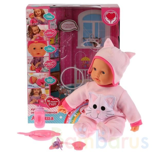 ПУПС ФУНКЦ. "КАРАПУЗ" 40СМ, НА БАТ., МЯГКОЕ ТЕЛО, 8 ФУНКЦ., ОЗВУЧ. 10 ПЕСЕН А.БАРТО, РЕАГИРУЕТ НА ЛОЖКУ, СОСКУ, ДВИГАЕТСЯ ЖИВОТ, ЗАКРЫВАЕТ ГЛАЗКИ, С АКСЕСС. В РУСС. КОР. в кор.6шт Малышка Ариша "Карапуз" будет лучшим подарком для вашей девочки. Она пьёт из бутылочки, кушает из ложечки, сосёт сос…