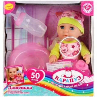 Функциональный пупс «Дашенька» ТМ «Карапуз» станет отличным подарком:- 15 фраз: «Спой мне колыбельную песенку», «Расскажи сказку, мамочка», «Покорми меня, мамочка», «Одень меня потеплее, мамочка», «Мама», «Папа» и др.- смех, лепет, гуление- плач, кашель, чихание- кряхтение, капризы, икота- пьет из …
