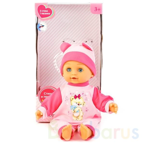 Интерактивная кукла ТМ «Карапуз» станет замечательным подарком для маленькой принцессы:- рассказывает 3 стихотворения А. Барто: «Бычок», «Зайка», «Мишка»- поёт песню «Лошадка»- мягкое телоКуколка одета в милый розовый комбинезон с принтом-мишкой и шапочку с ушками в тон. Одежду легко снять и надеть…