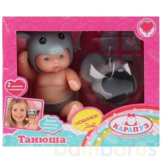Пупс «Танюша» ТМ «Карапуз» - лучший подарок для девочек. Аксессуары в комплекте:- шапочка «Слонёнок»- шапочка «Мышонок»Танюшу можно купать. Ребёнку будет интересно менять образы куклы, одевая на неё разные шапочки (легко снять и надеть). Лицо пупса детально проработано. Игра с куклой учит ребёнка:…