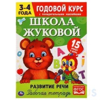 Рабочая тетрадь «Годовой курс, 3-4 года. Развитие речи» из серии «Школа Жуковой» ТМ «УМка» станет отличным помощником для родителей в развитии малыша: