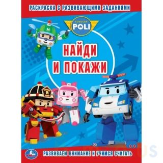Раскраска с развивающими заданиями «Робокар Поли» из серии «Найди и покажи» ТМ «УМка» – настоящий подарок для поклонников одноимённого мультсериала: