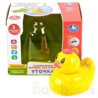 Малыш с удовольствием будет принимать ванну вместе с этой весёлой уточкой: если отпустить её в воду, она закрякает и выпустит фонтан воды. Ваш ребёнок не захочет расставаться с такой яркой интересной игрушкой и завершать водные процедуры - и больше никаких слёз во время купания!
