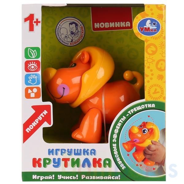 Развивающая игрушка-крутилка «Лев» ТМ «УМка» станет прекрасным подарком для ребёнка:- звуковые эффекты – трещотка- подвижные части тела (голова, ножки, хвост)- интересный дизайнЯркая игрушка в виде симпатичного льва, который забавно трещит, если покрутить его движущиеся элементы, обязательно привле…