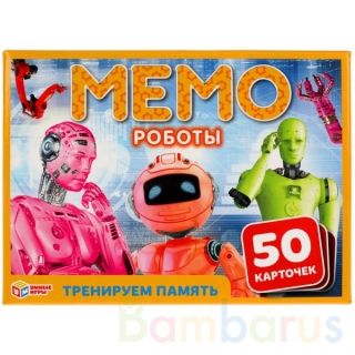 Карточная игра «Мемо. Роботы» ТМ «Умные игры» - интересная развивающая игра, которая обязательно понравится детям:- 50 красочных карточек (25 пар)- буклет с правилами игры и интересными заданиями- количество игроков: от 1 до 6- время: 15-20 минут- отличная тренировка памятиМемо – занимательная игра…
