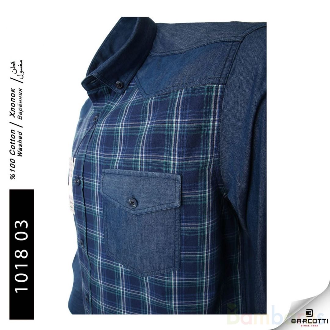 Стильная рубашка джинсовый покрой в клетку. Выполнена из мягкого «дышащего» хлопка. Элегантный вариант на все случаи: